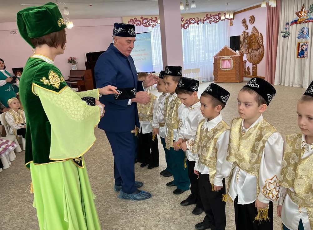 Ә инде шушындый истәлекле көнне, бәйрәмебезгә тагы да ямь өстәп, күренекле шәхесләрнең килүе икеләтә шатлык тудырды. Бакчабызның якын дусты, шәһәребезнең мактаулы гражданины, «Горэлектротранспорт» предприятиесенең генераль директоры Рафаил Исмәгыйль улы Хәбибуллин, ярдәмчесе Чулпан Рафис кызы Шәрәпова белән бергә бәйрәмчә киенеп, сабыйларыбызны бәйрәм белән тәбрикләп, асыл ташлар белән чигелгән түбәтәйләр, бакчабызга милли бизәкләр сурәтләнгән самавыр бүләк итүе – үтә дә матур күренеш. Балалар гына түгел, үзебез дә нык сөендек. Кылган яхшылыкларыгыз үзегезгә дә меңе белән кайтсын, Рафаил Исмәгыйлович.